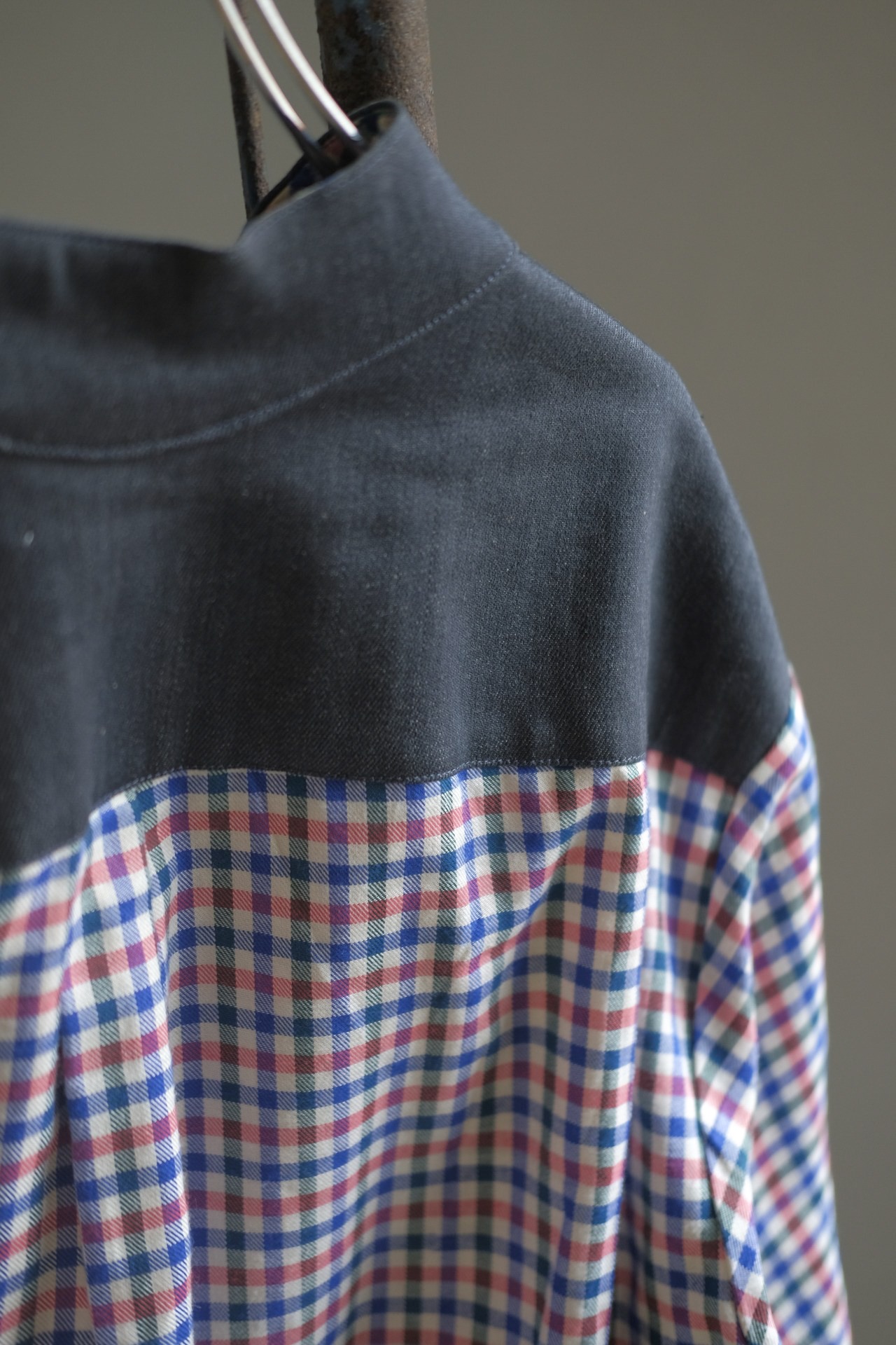 ギンガムチェックが爽やかなヘンリーネックのトップス