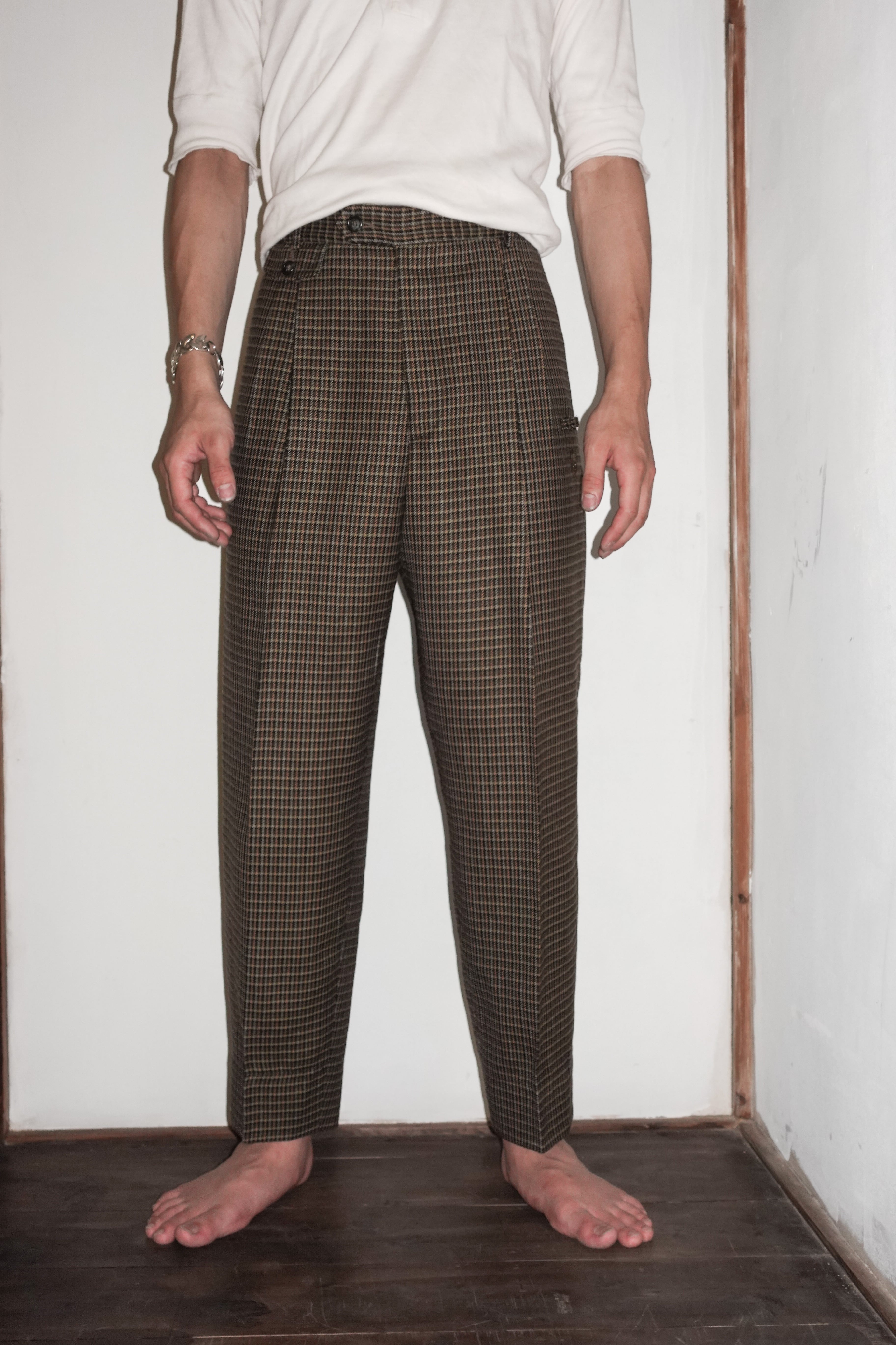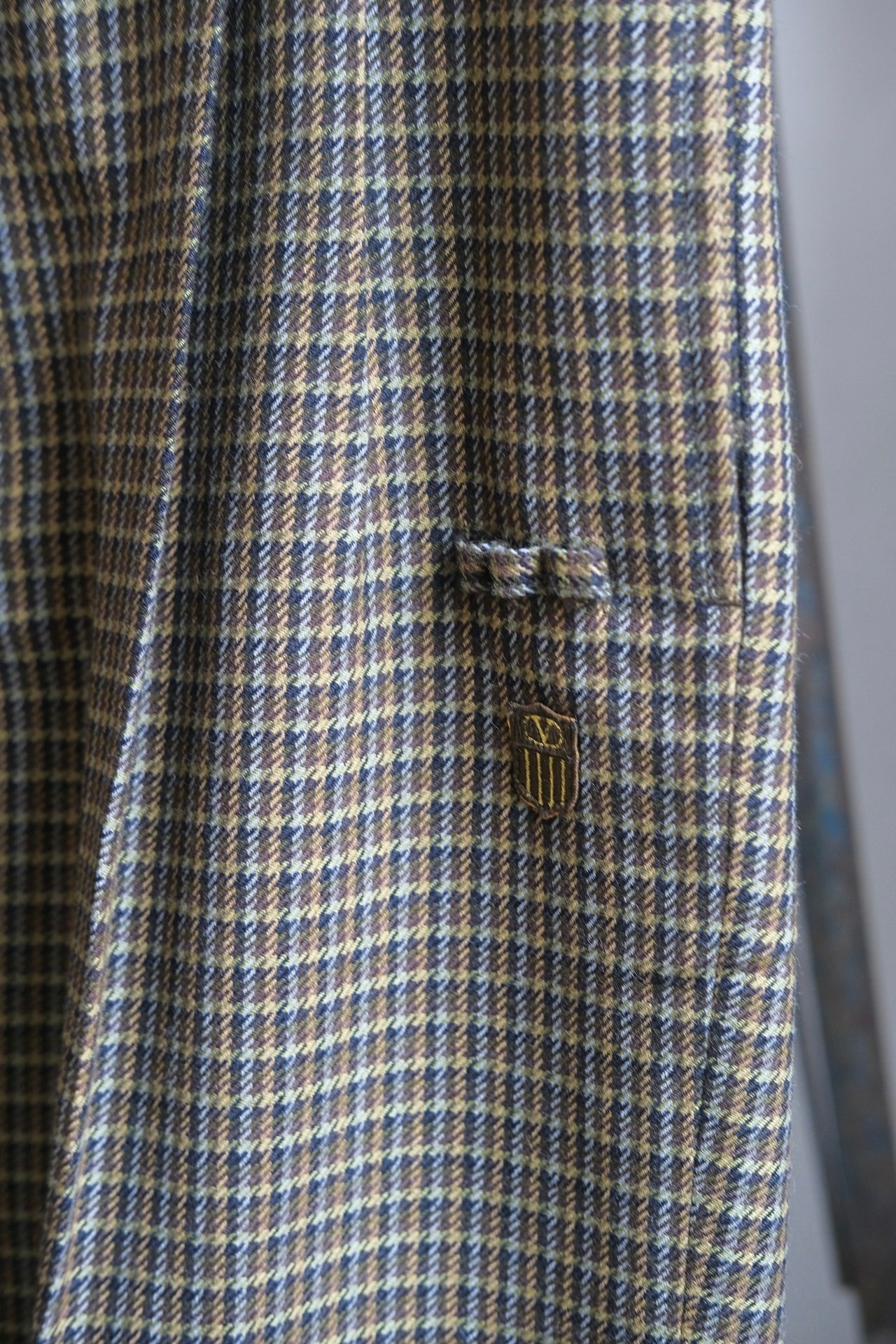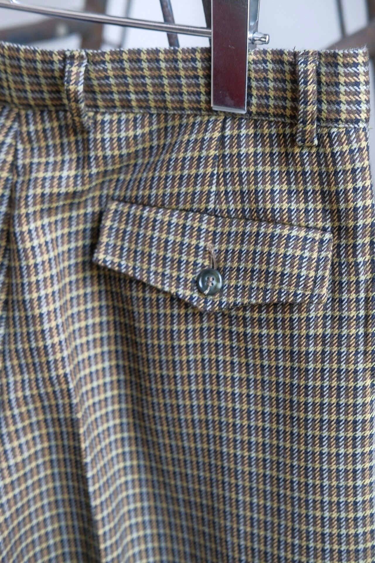 ツータックでテーパードシルエットになっており、ガンクラブチェックや随所に見られるディティールからトラディッショナルな雰囲気が漂っています