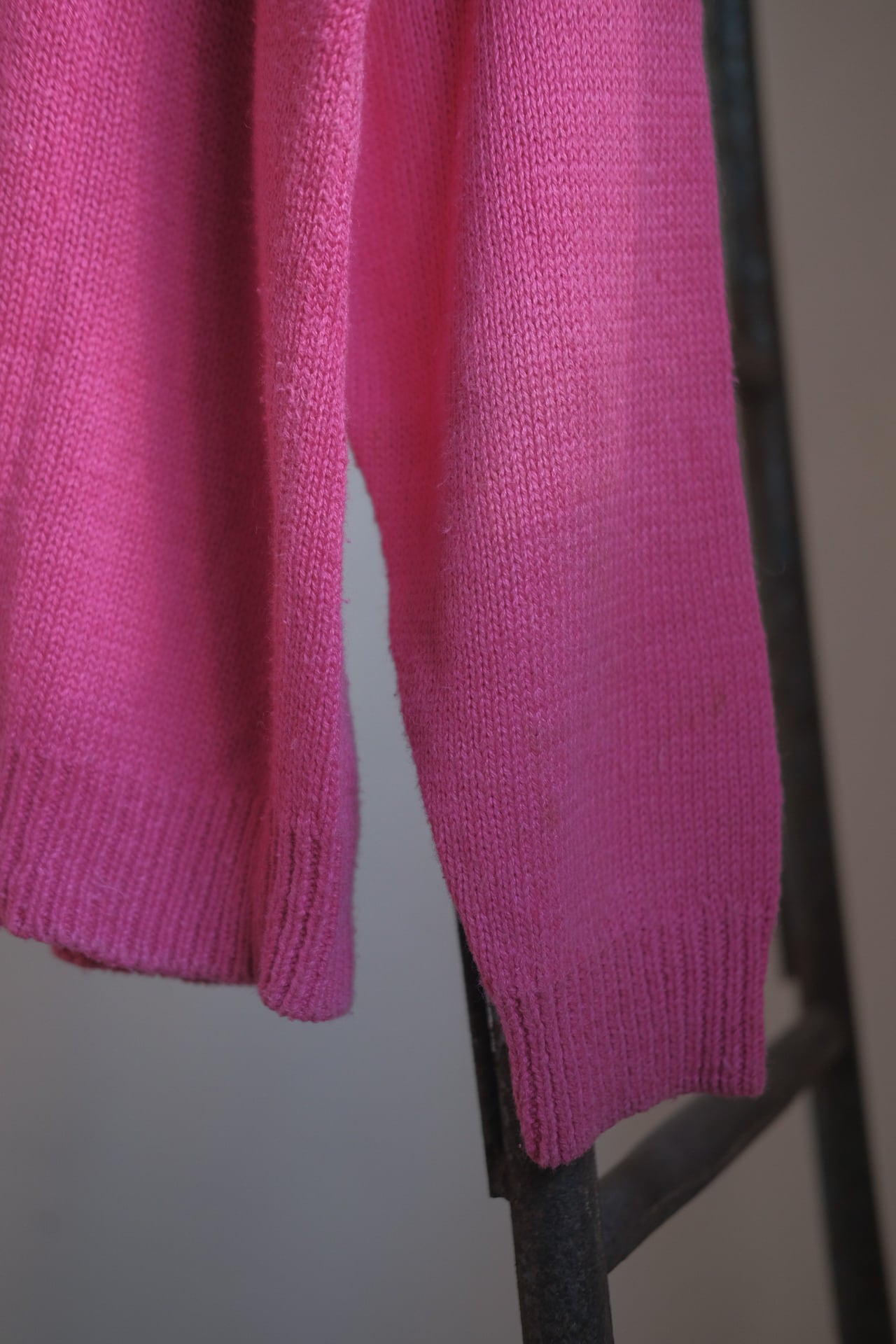 目を引くpink knitは暗くなりがちな冬のコーデに差し色として使っても可愛いと思います。