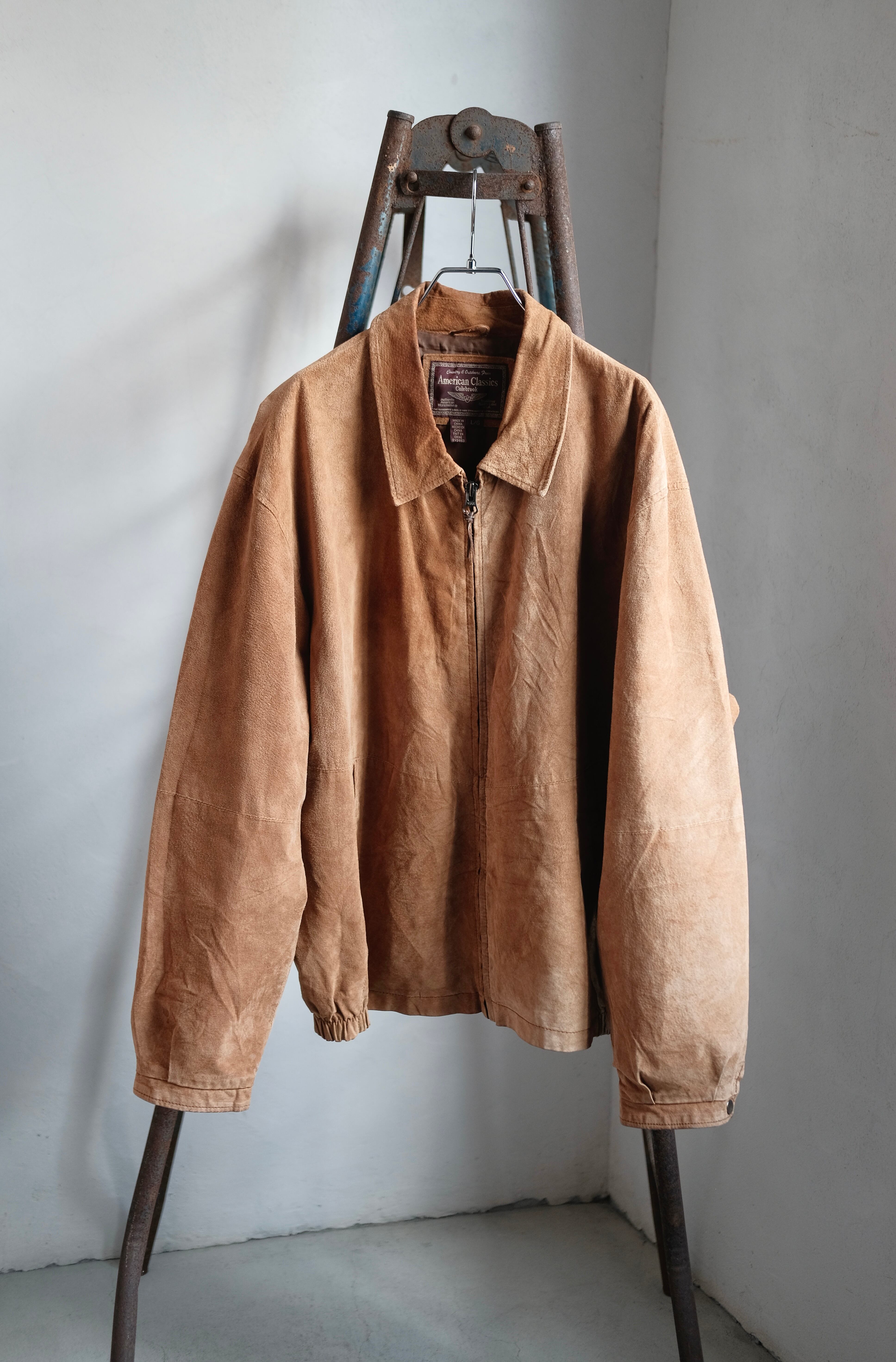 フロントジップでオーバーサイズが特徴的なスエードのジャケット