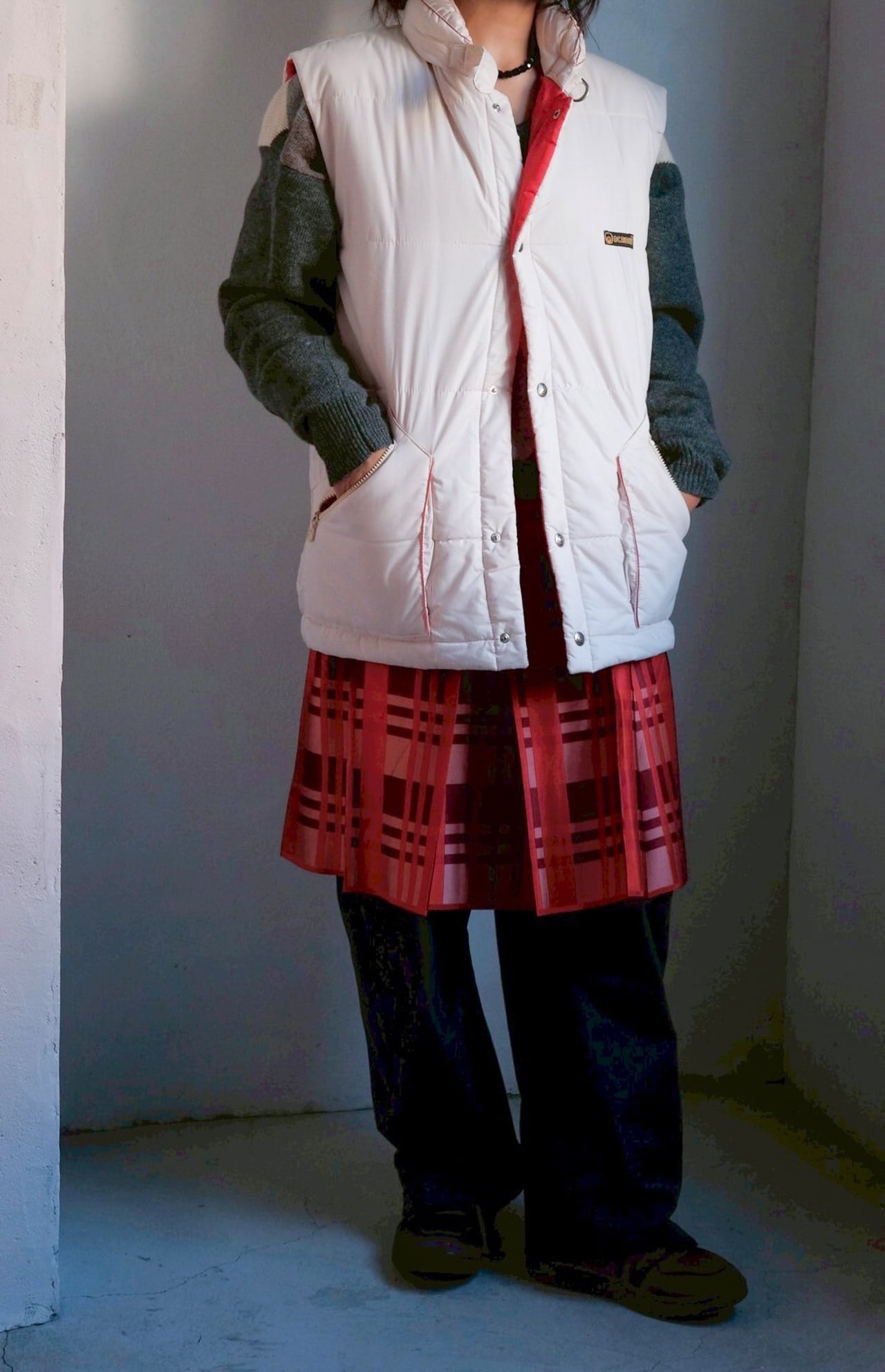 アウターの上からでも羽織れてしまいそうな大きめのダウンベスト