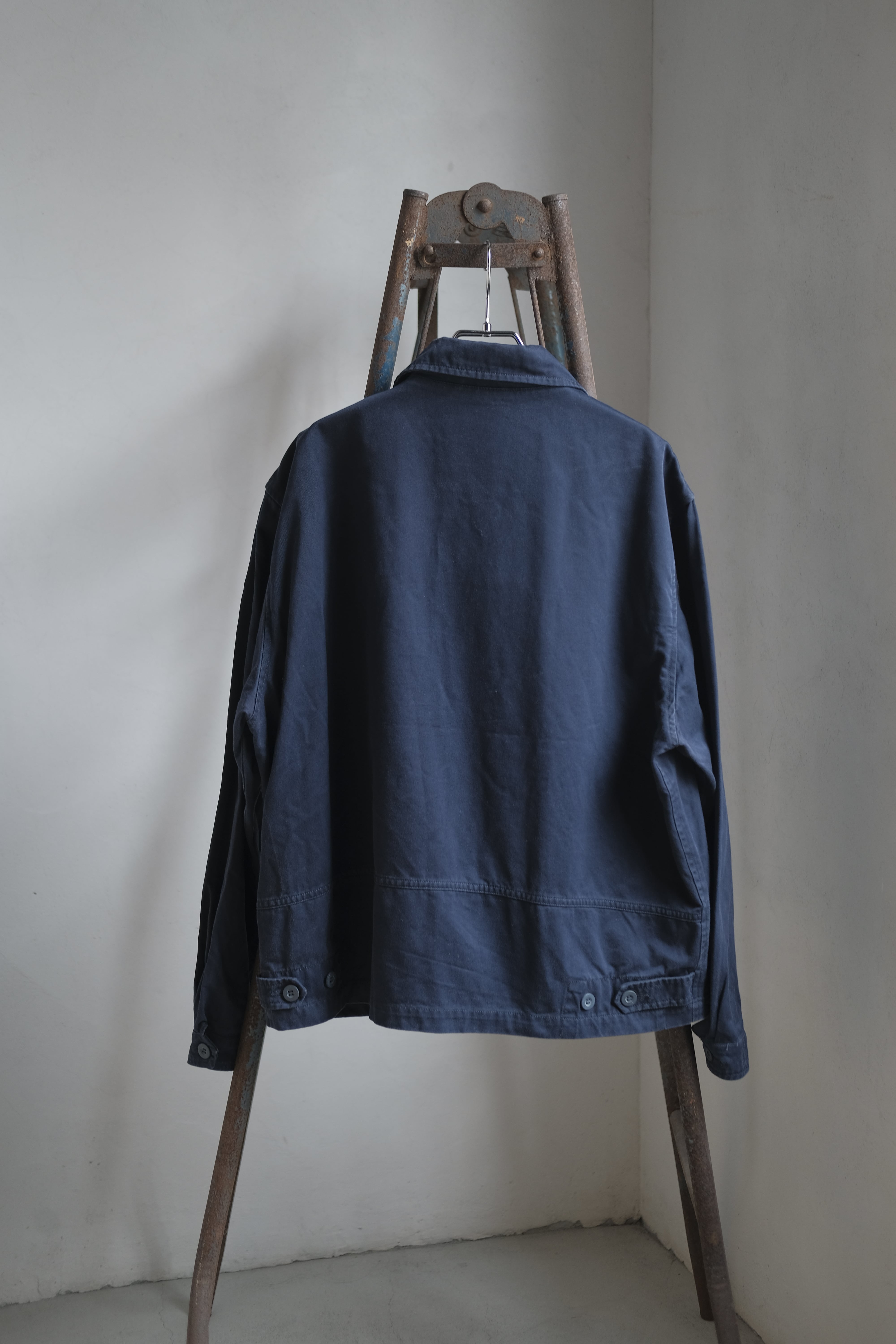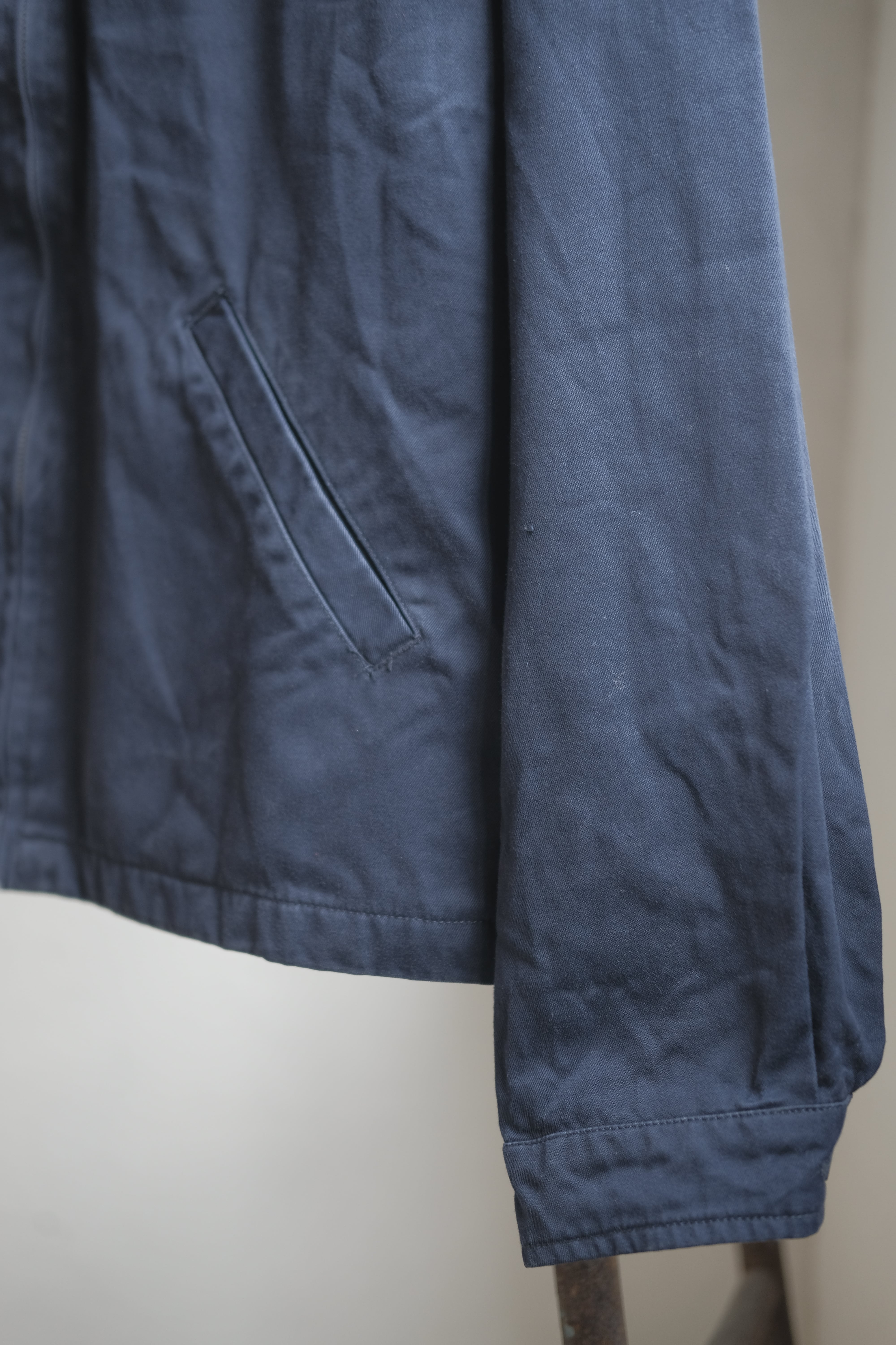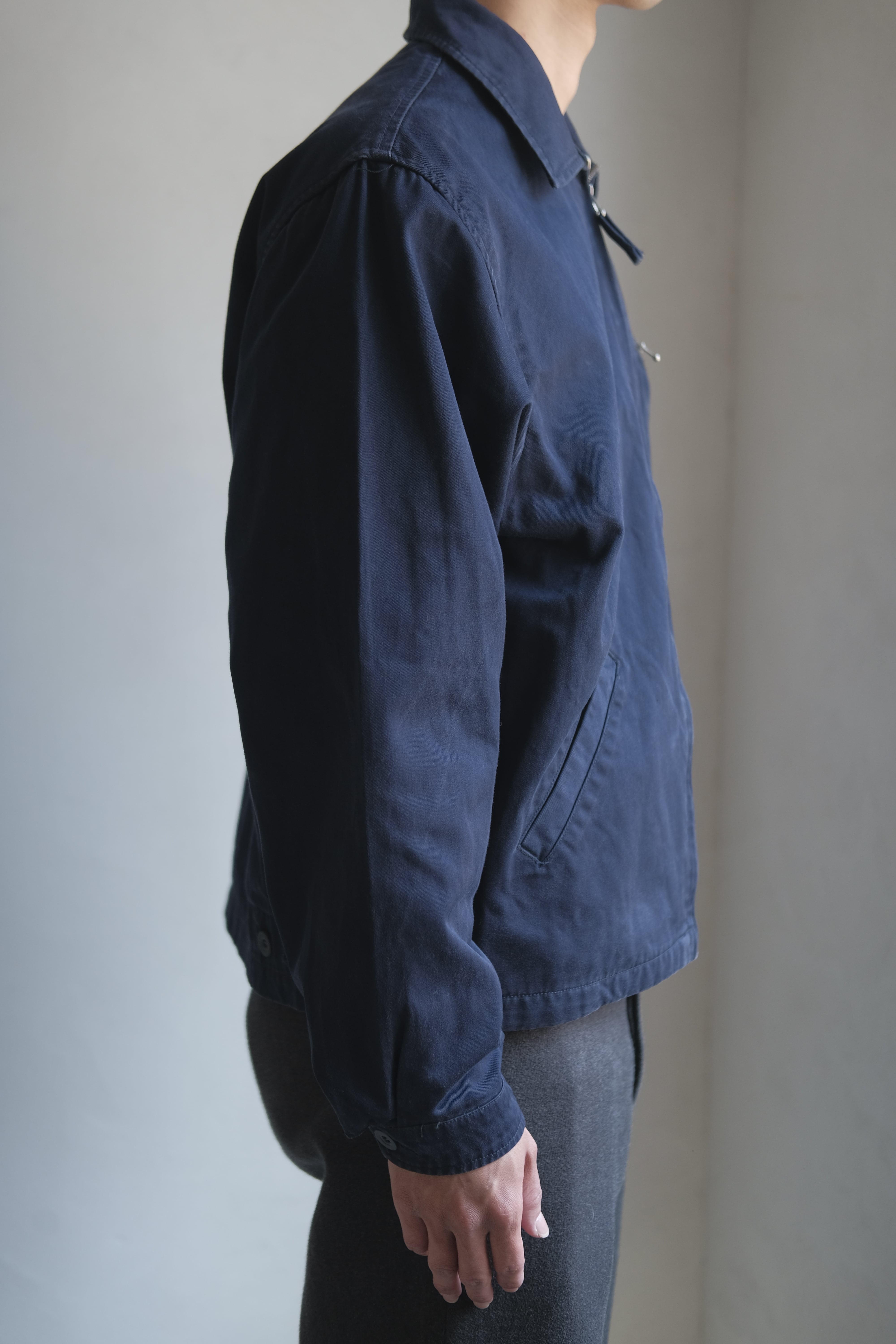 至ってシンプルなワークジャケットですが、ネイビーの色味やシルエットなど余計な部分が一切ない