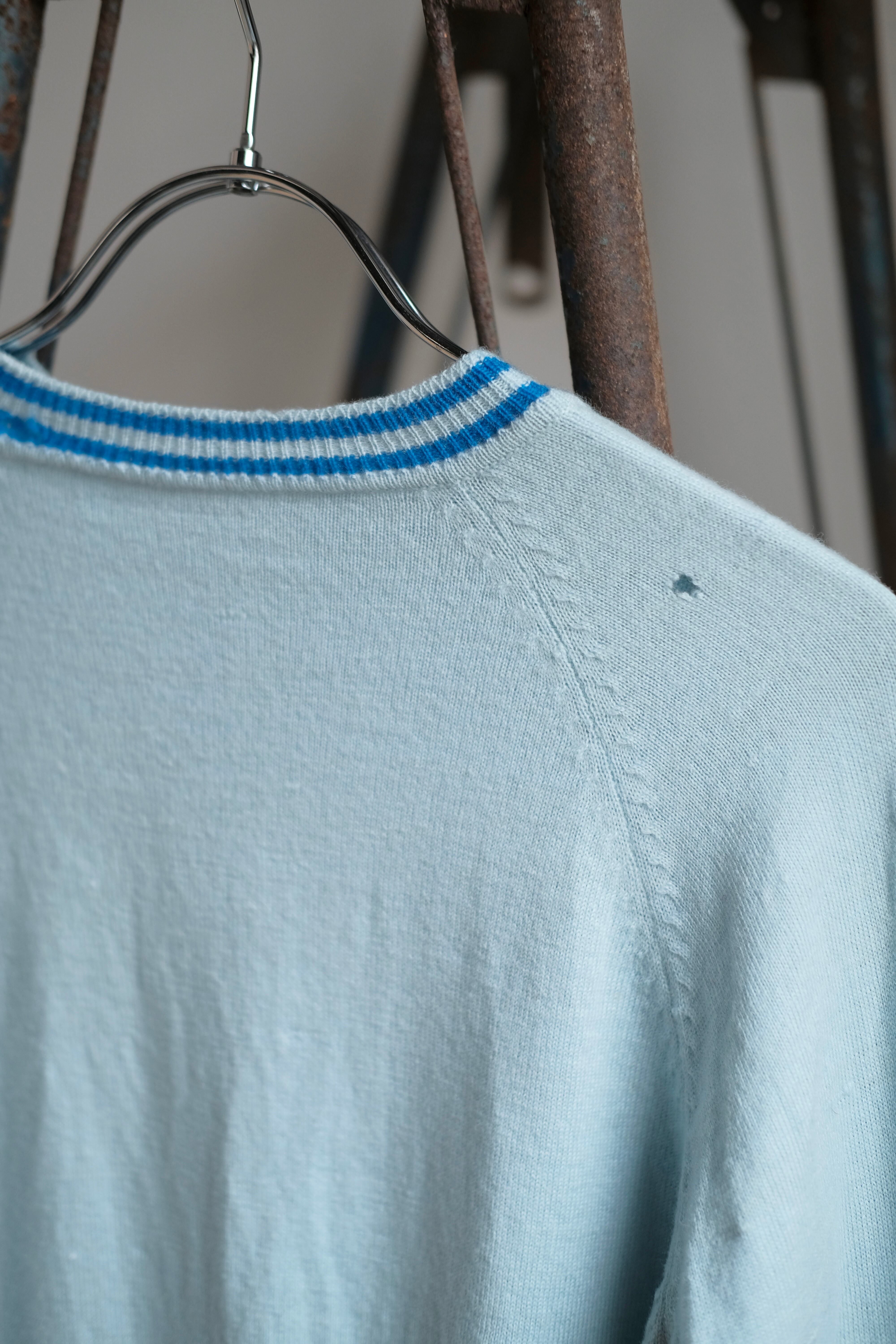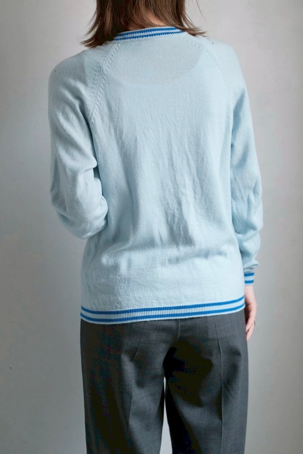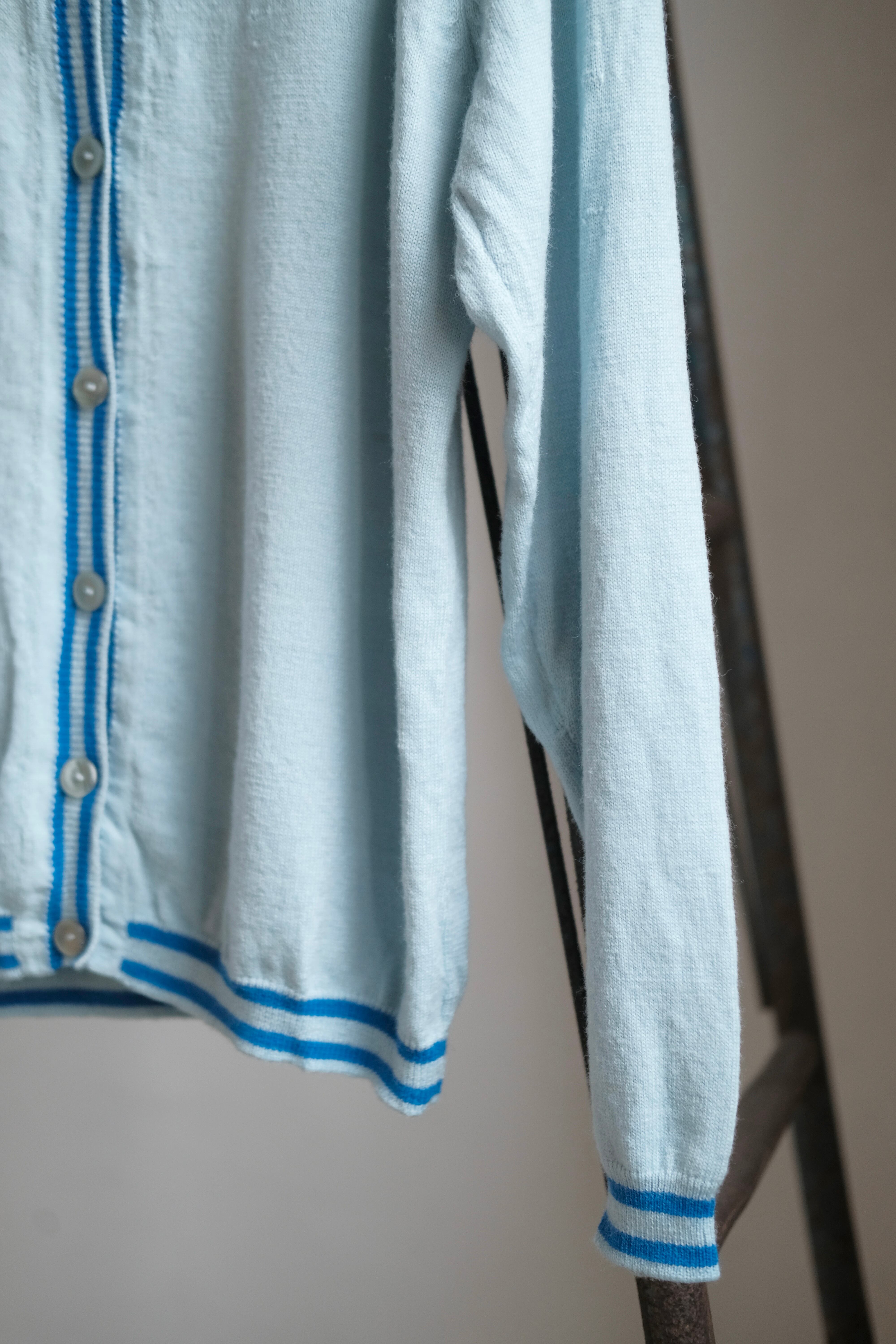 青いラインが可愛いニットカーディガン