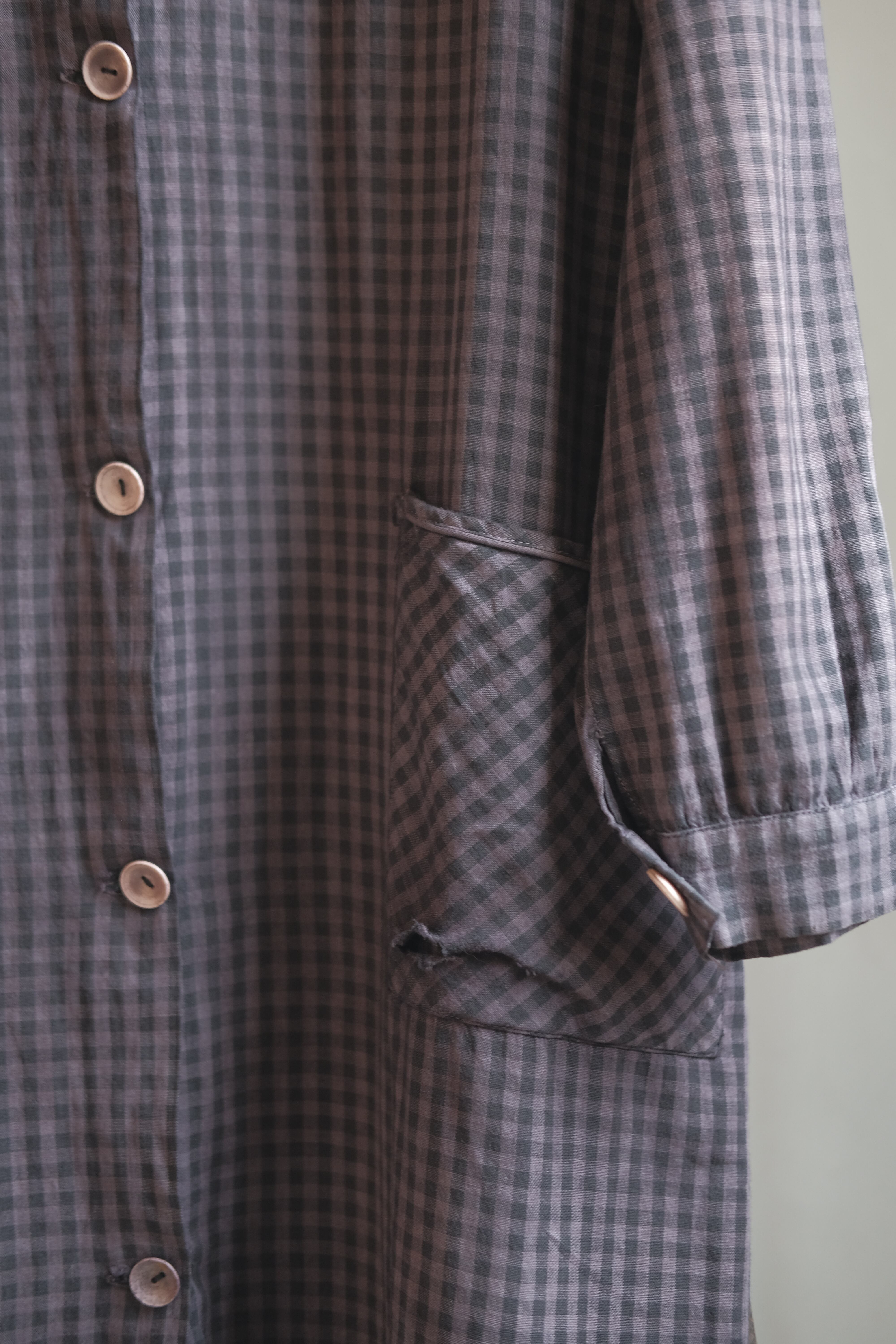 大きめのボタンにポケット、落ち着きのあるコットン素材