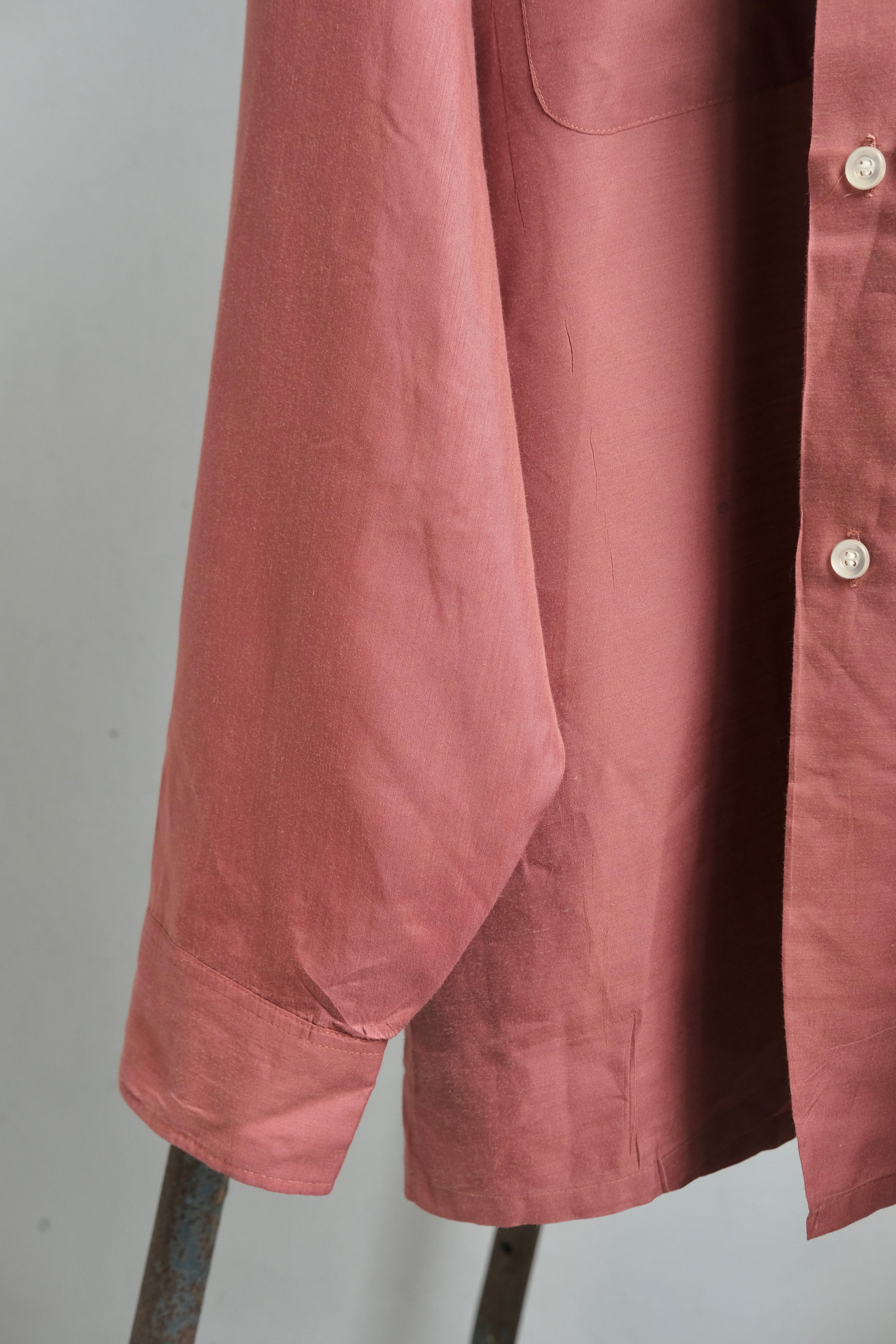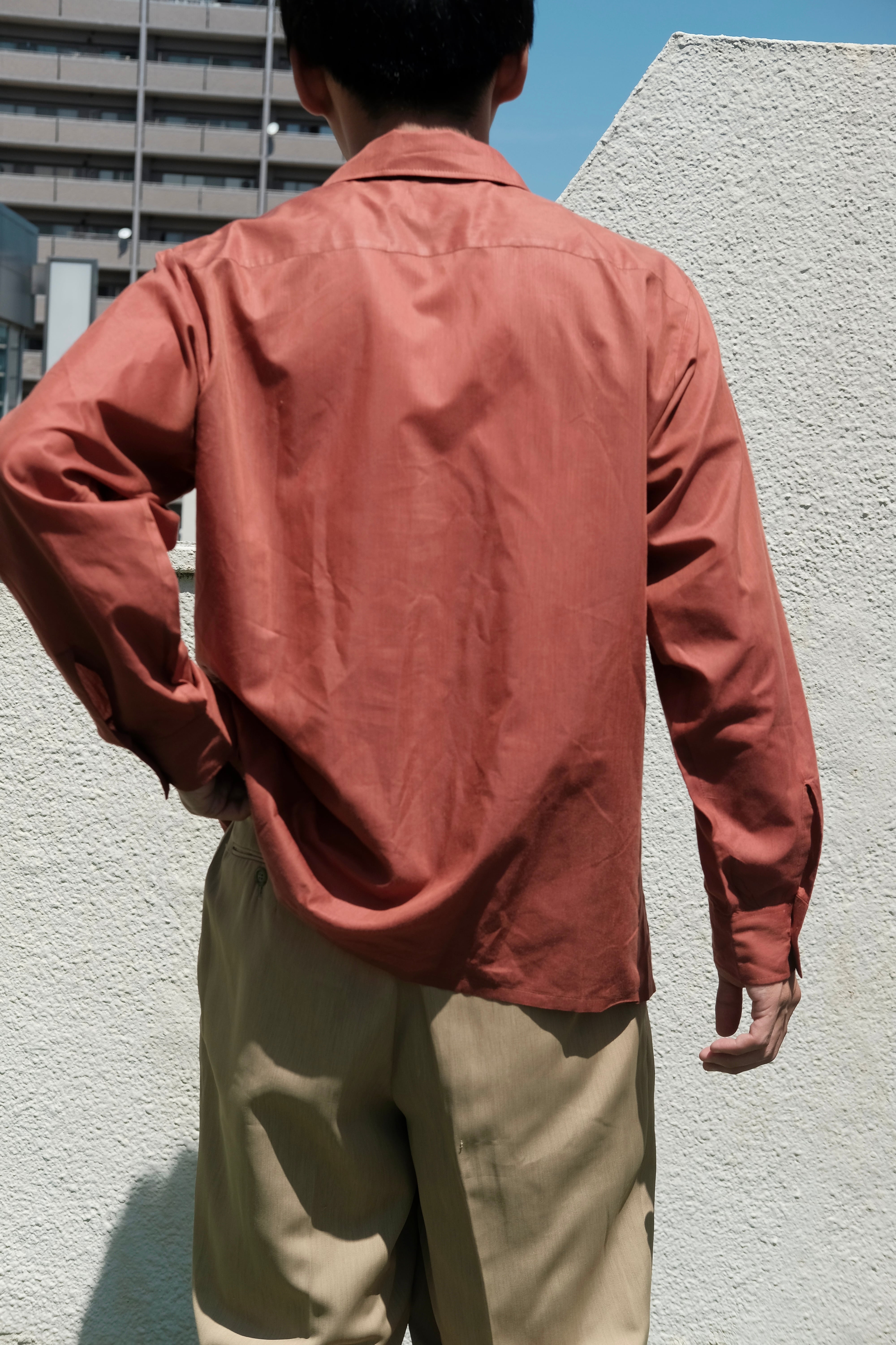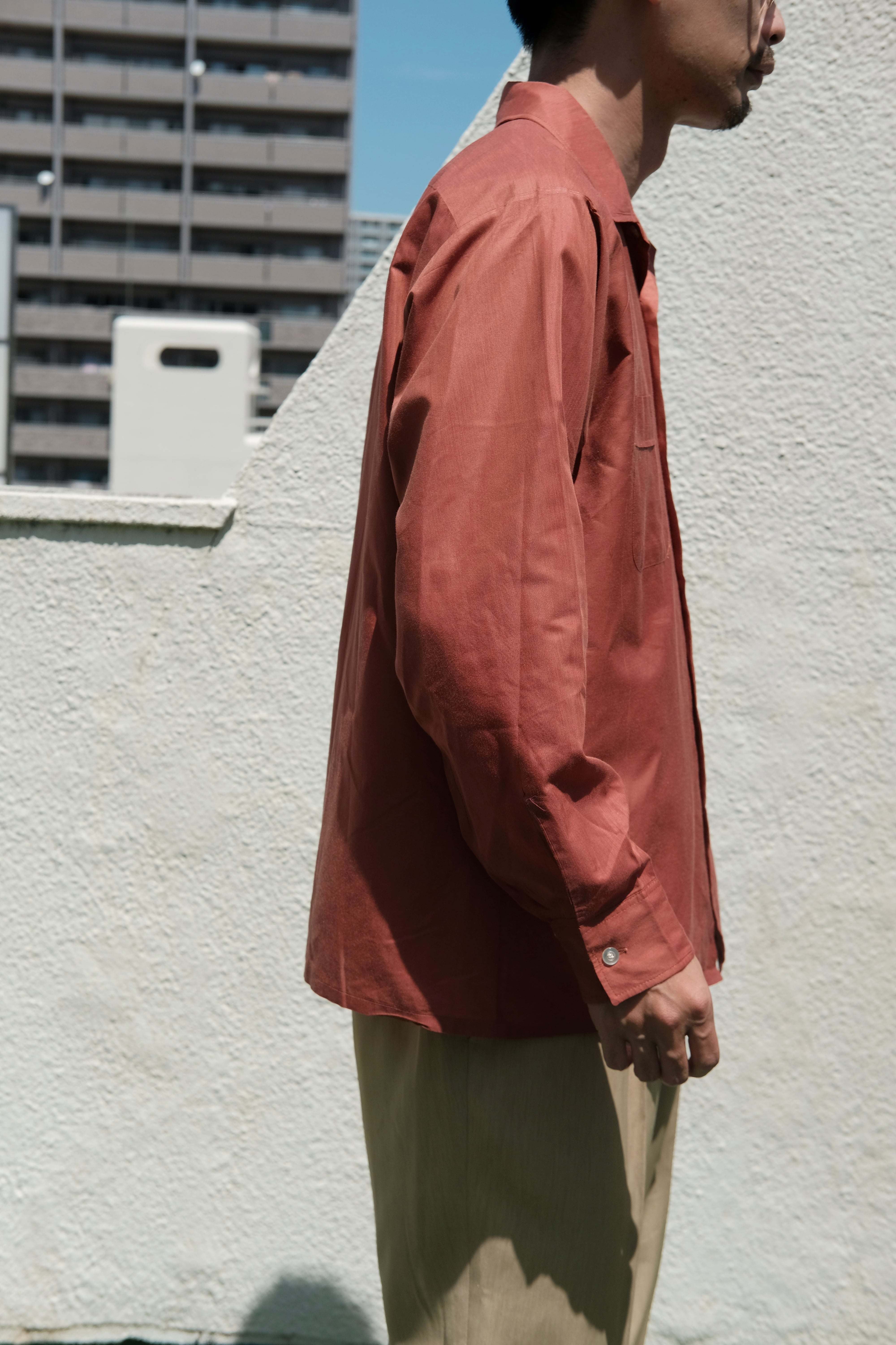 朱色が鮮やかなコットンのオープンカラーシャツ