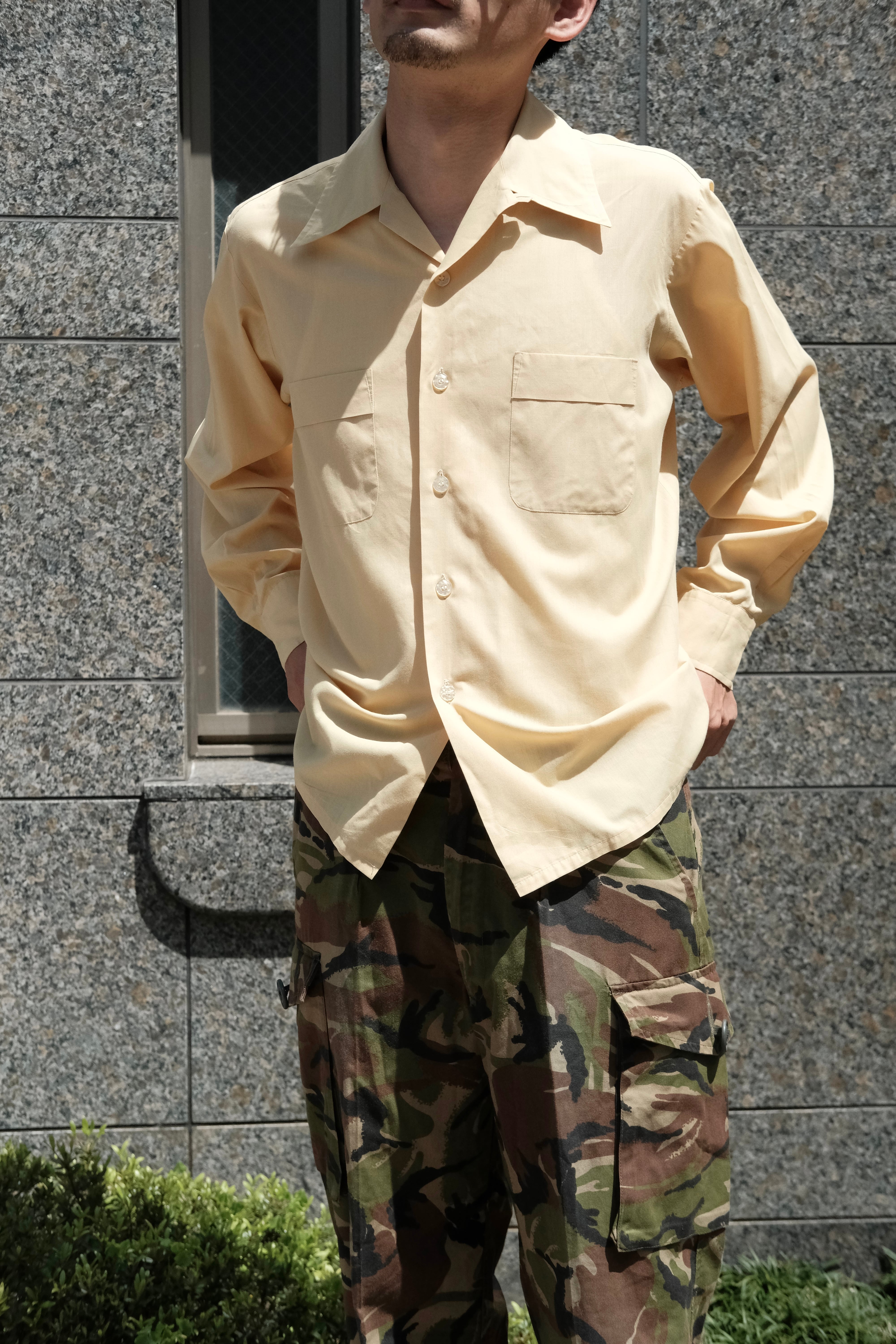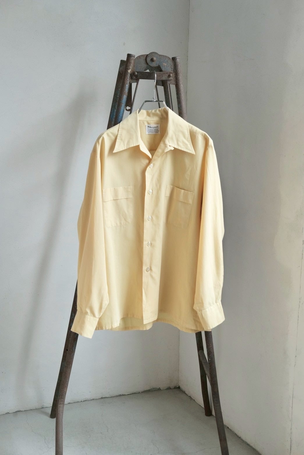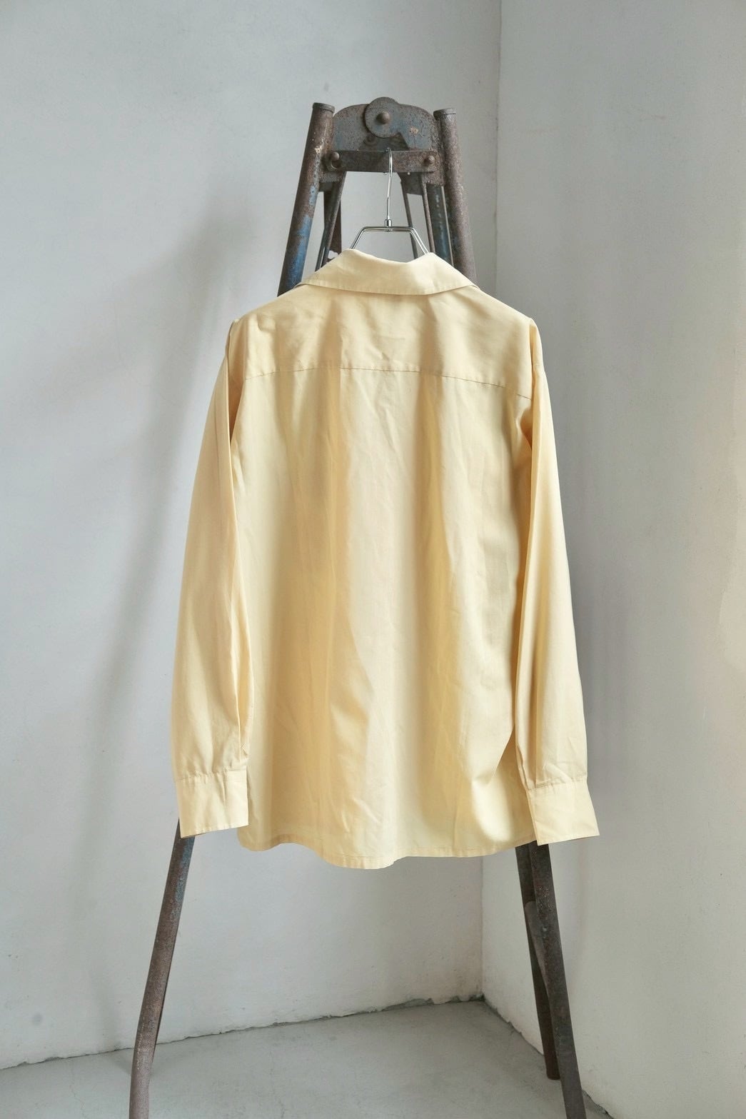 春らしい黄色が可愛いコットンのオープンカラーシャツ