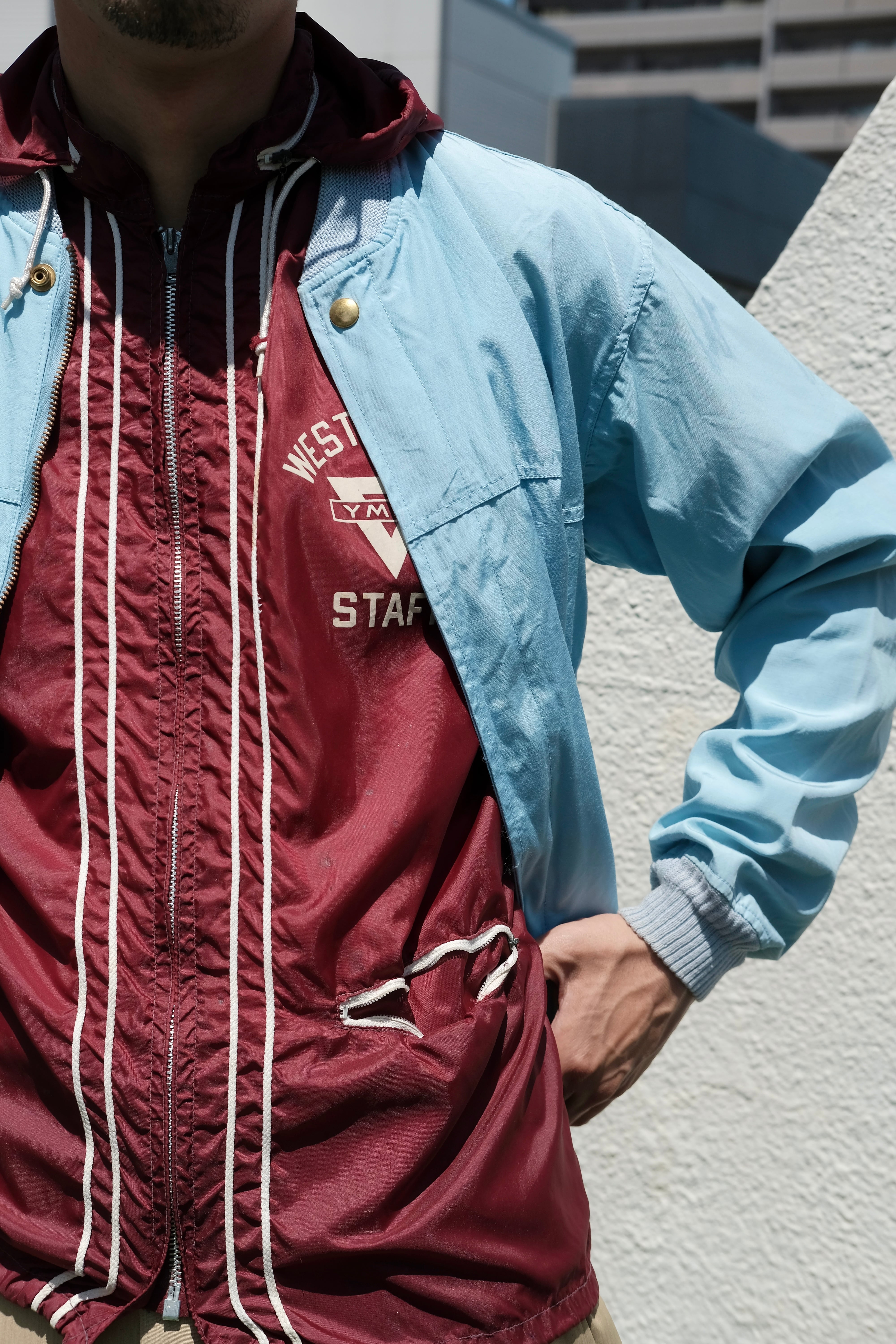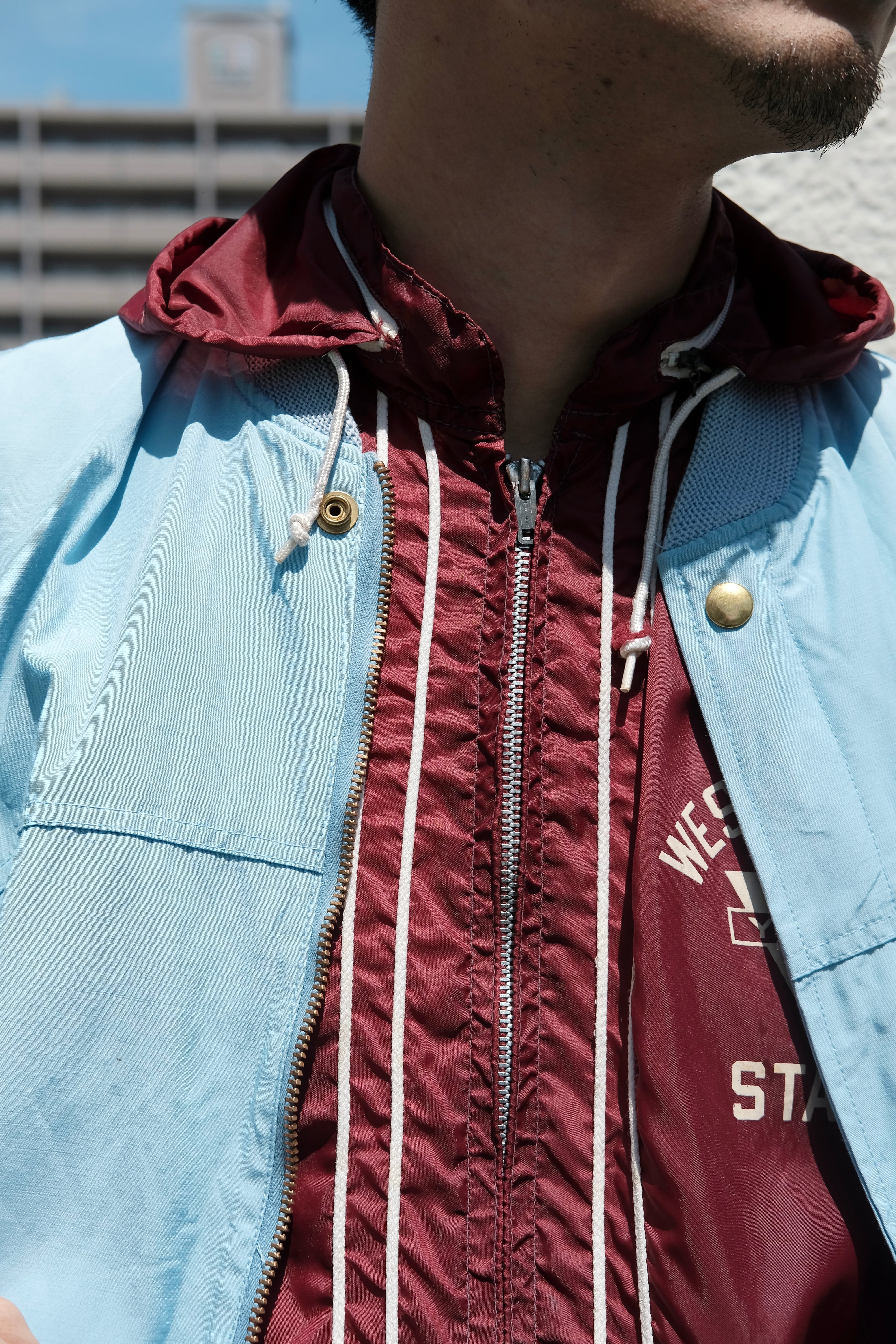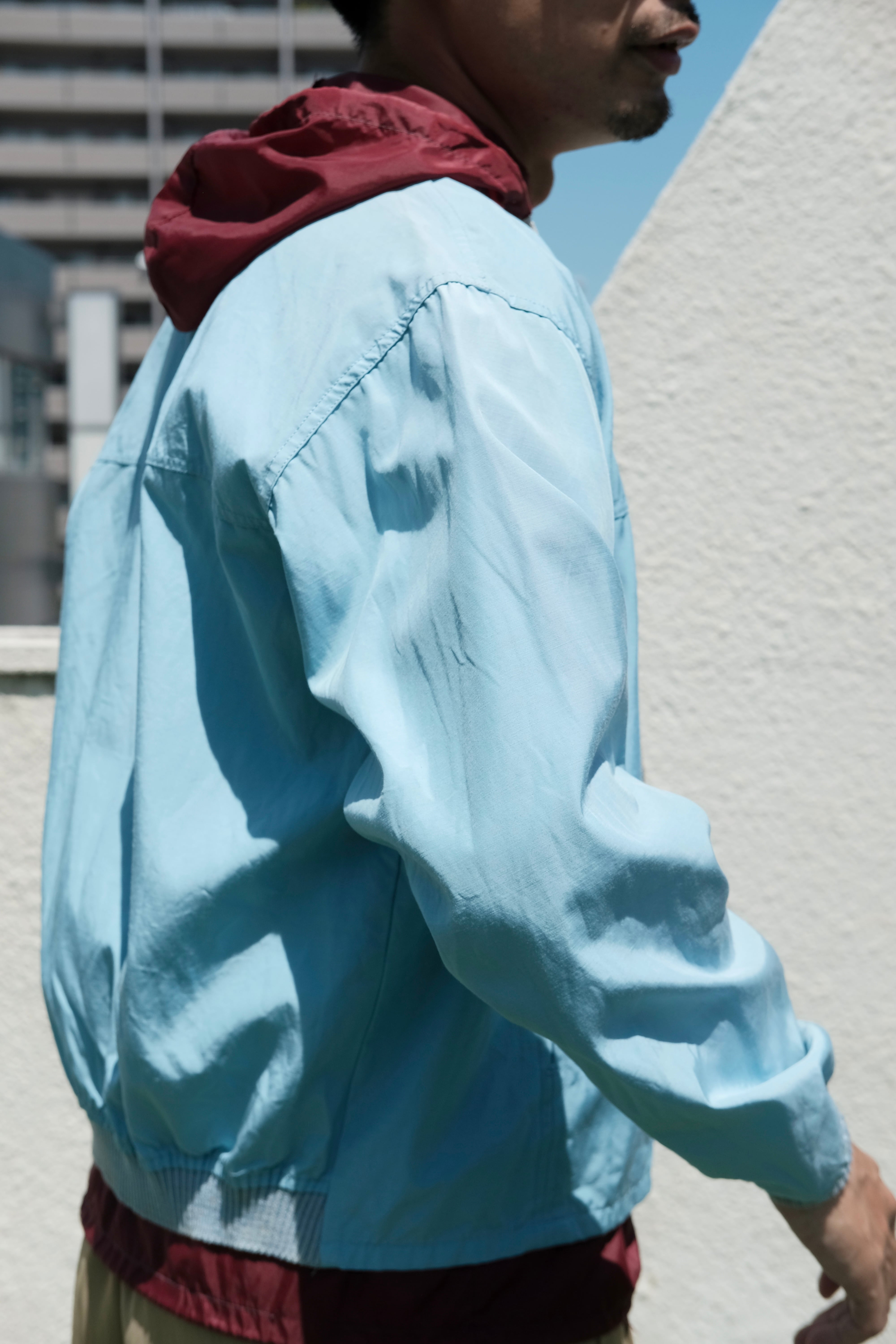 発色の良い水色がなんともフェミニンな雰囲気を醸し出していますが、メンズの王道のブルゾンの形なので、スタイリングには落とし込みやすいと思います