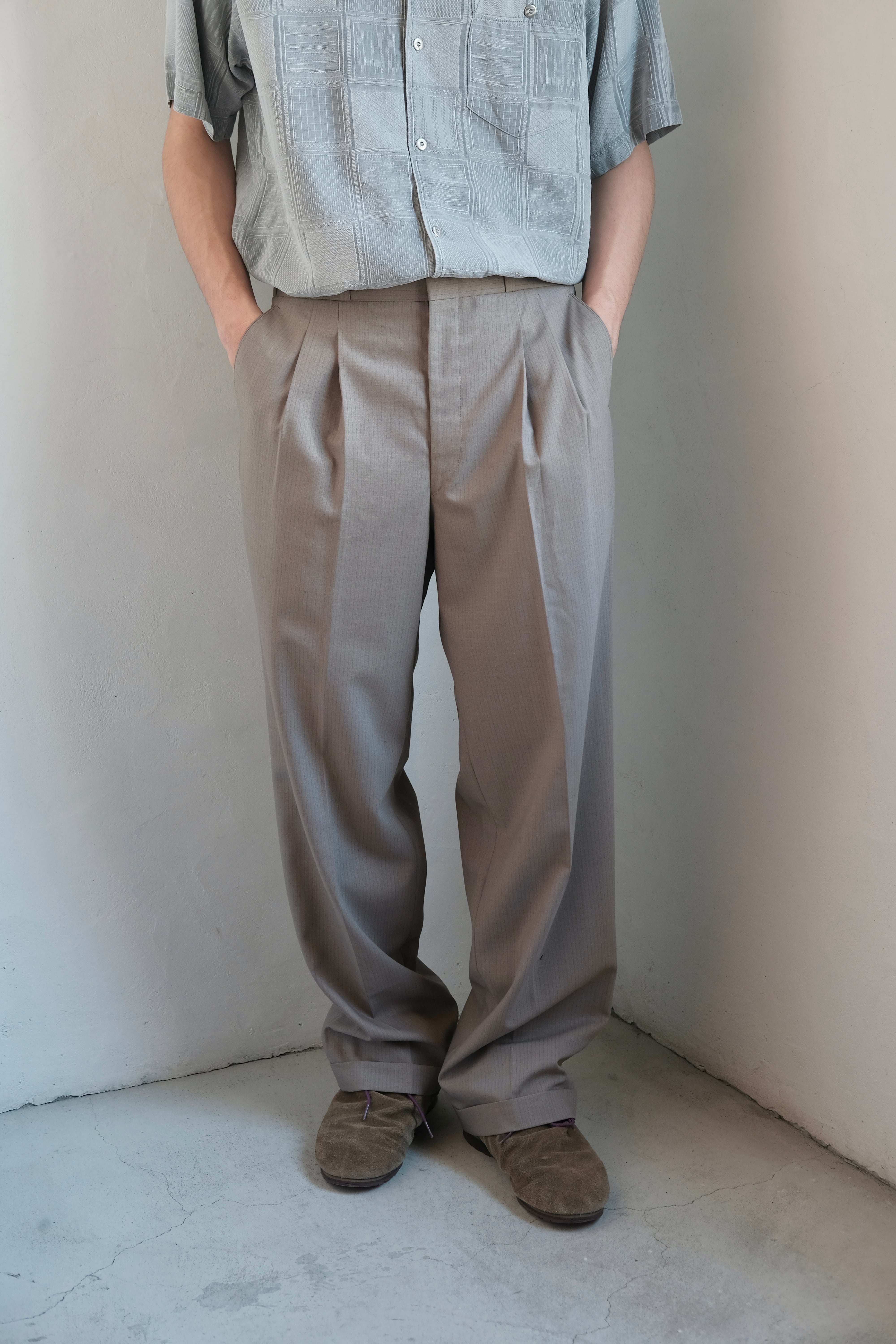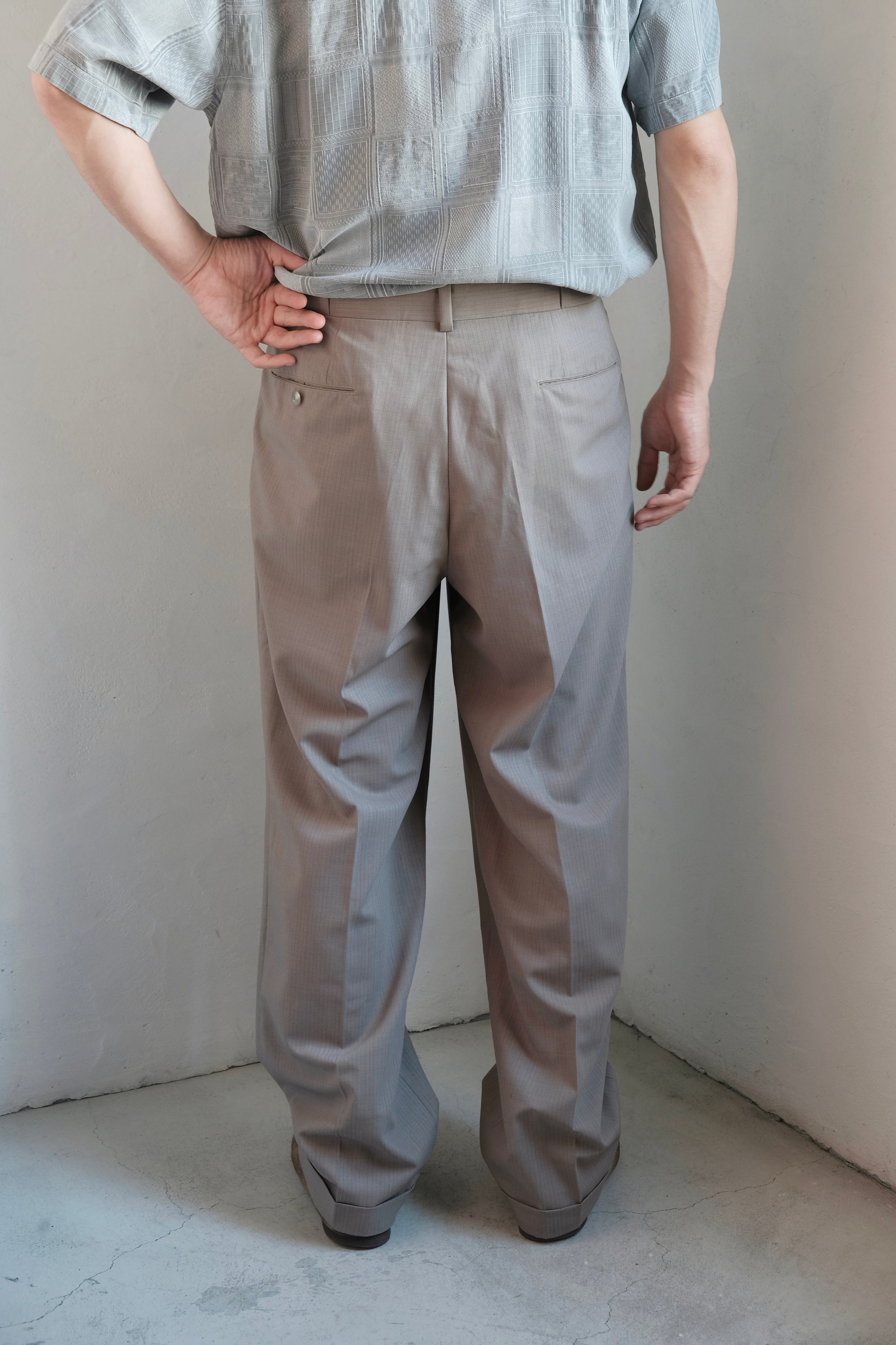 ツータックで程よい太さ、色もグレー寄りのベージュて感じで、合わせやすいです
