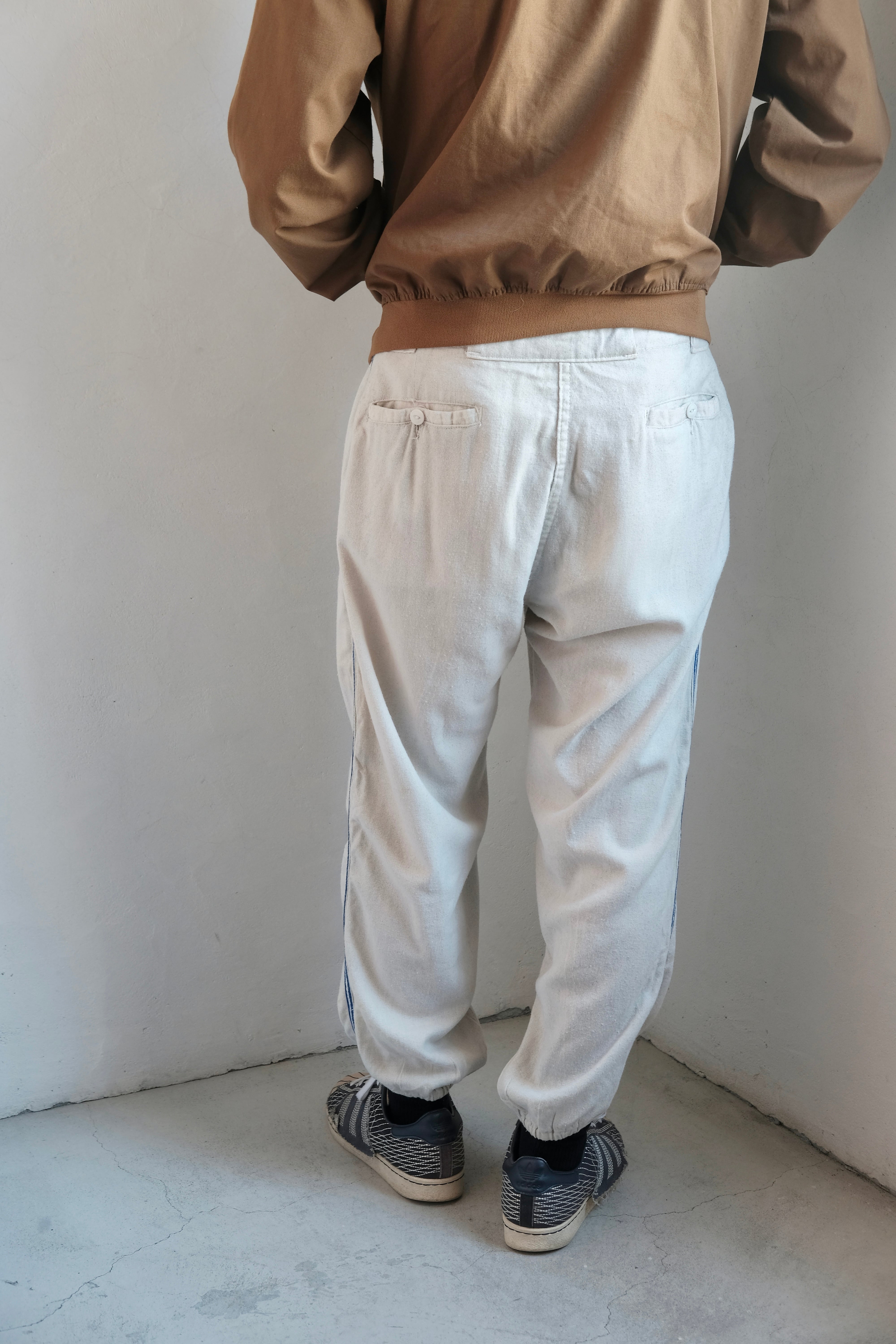 ウール素材で、裾にはリブがあるので、少し裾をあげてソックスを見せるというまさに野球する時のスタイルで履いても良さそうです