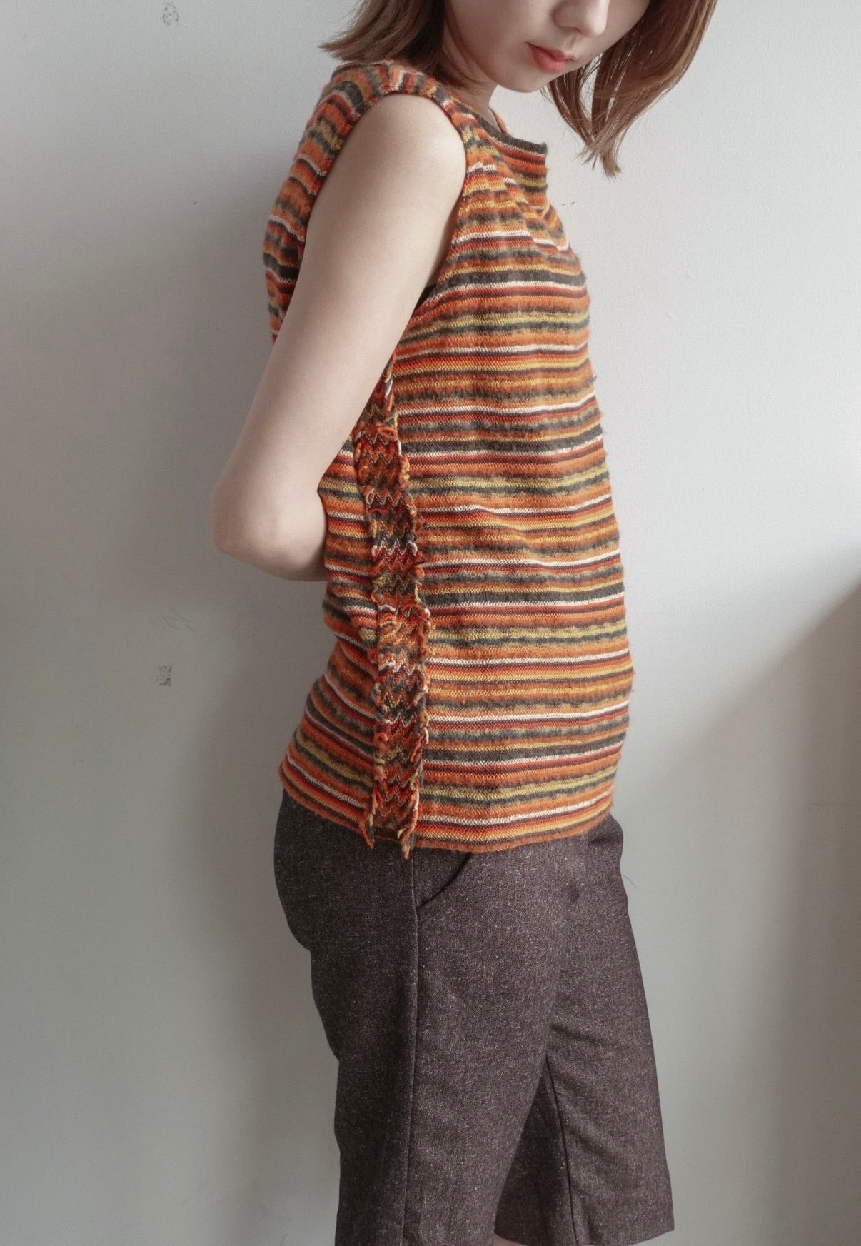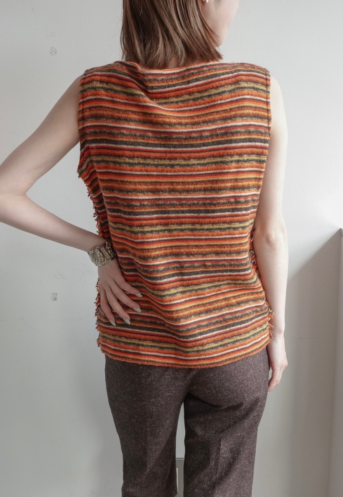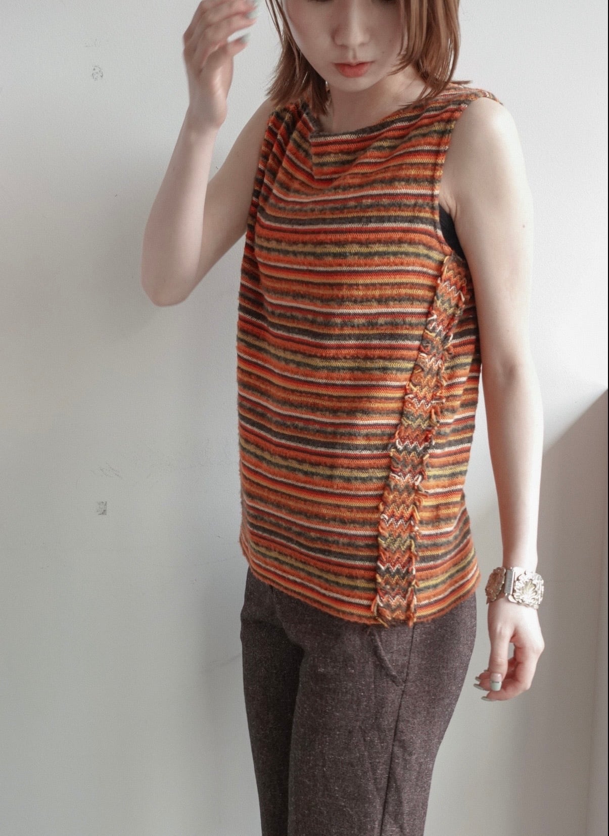 マルチボーダーのノースリーブニット