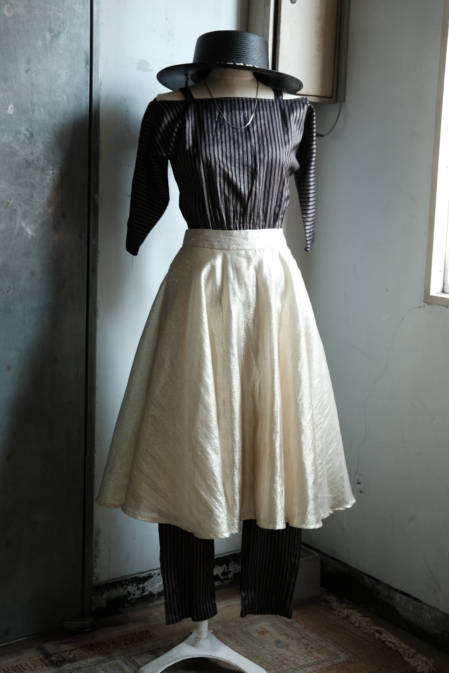 夏はさらりと1枚で足元にはビーサンを持ってきても様になります。肌寒い季節にはタートルニット等をインナーにご着用頂ければ年間を通してお楽しみ頂けます。写真のようにスカートを上からレイヤードしても素敵です。
