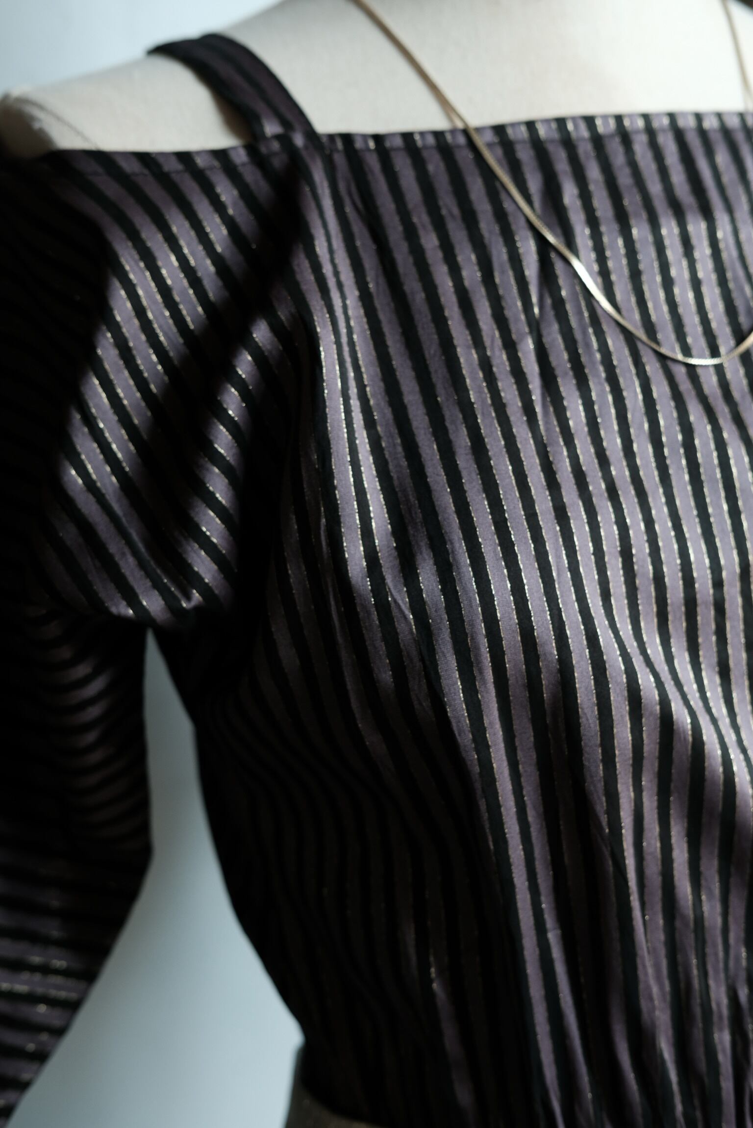 blackに深めのpurple、blackとpurpleを縁取るように入れられたgoldのラインが美しい一着。