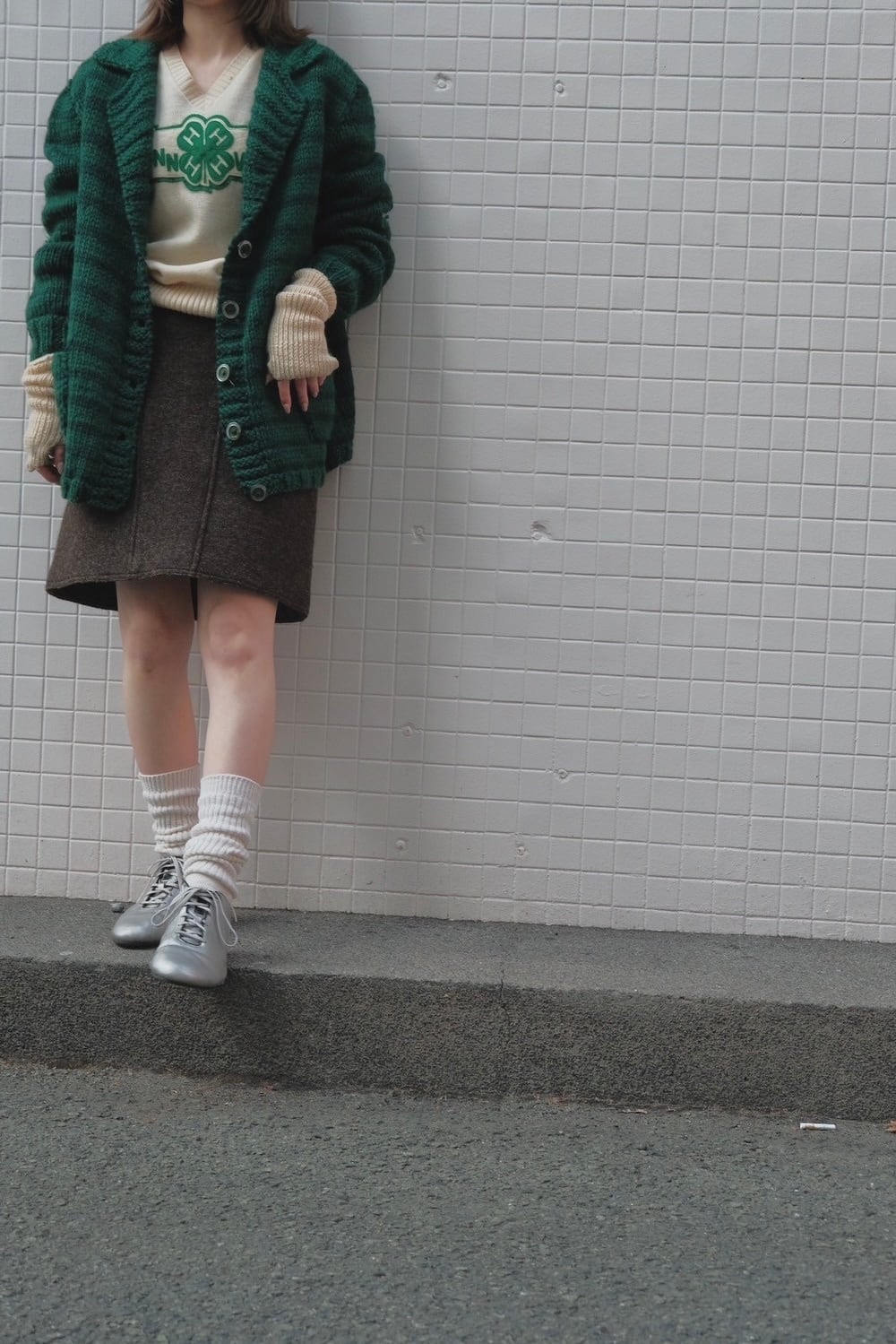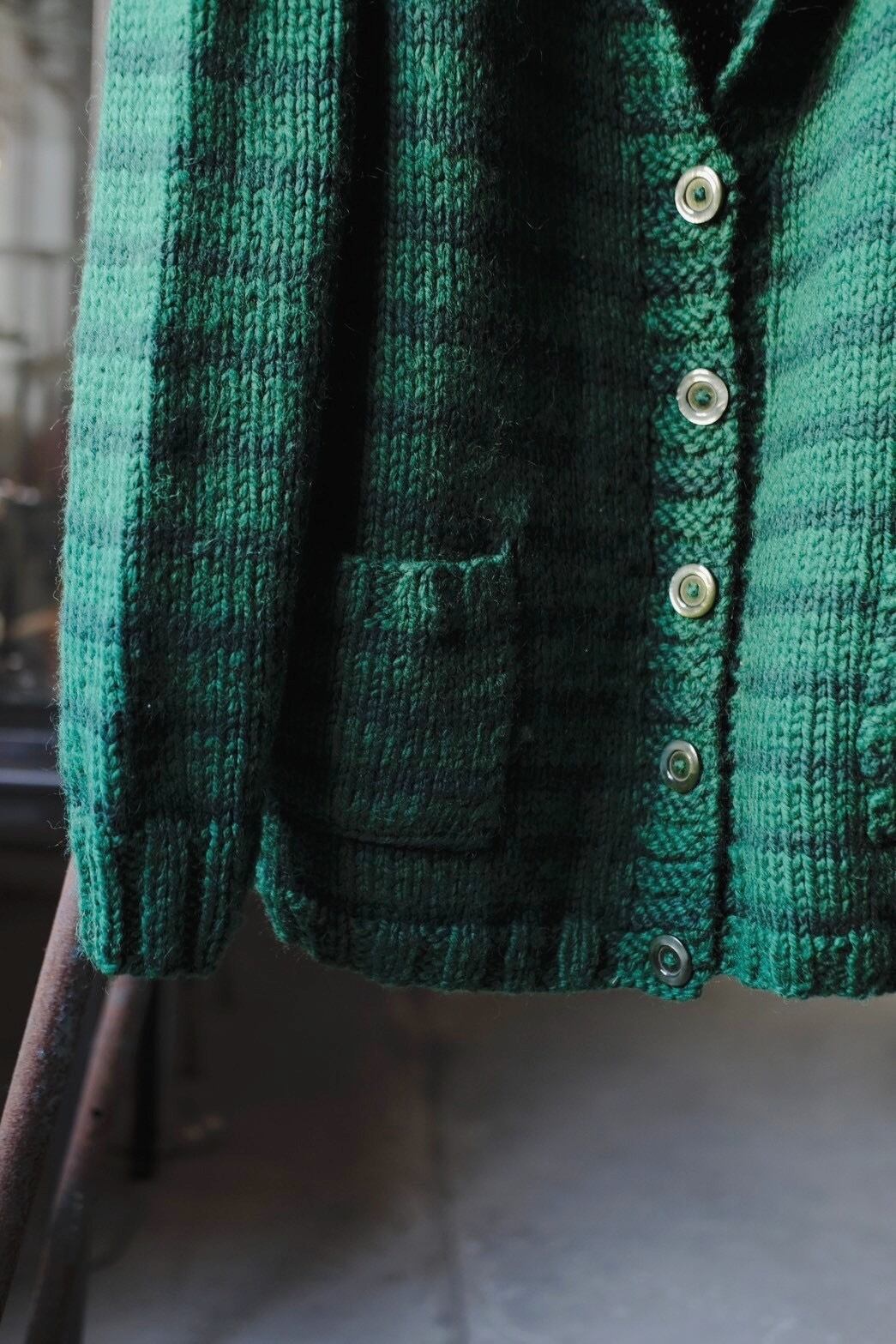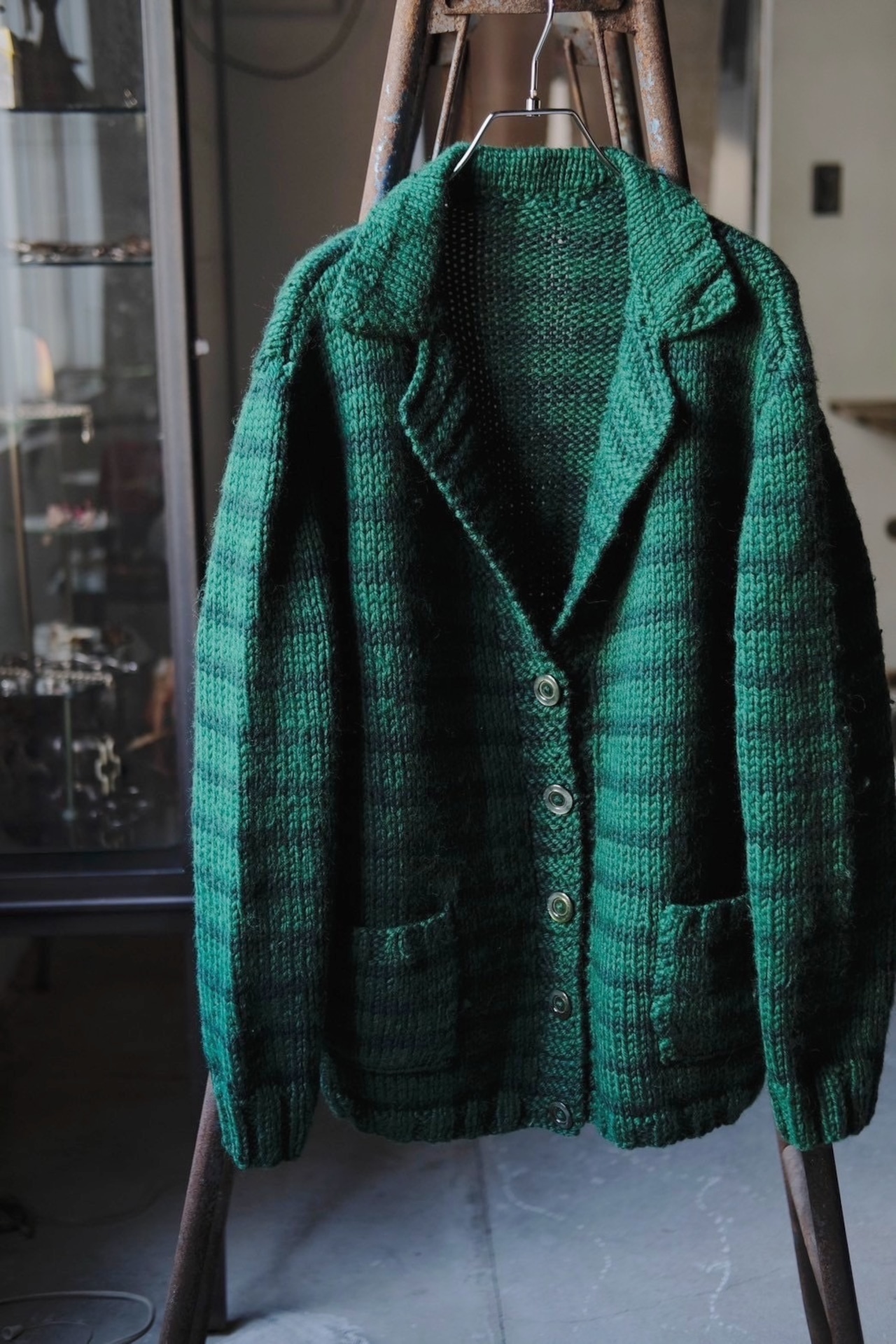 greenとnavyの絶妙な色合いが素敵なknit jacket